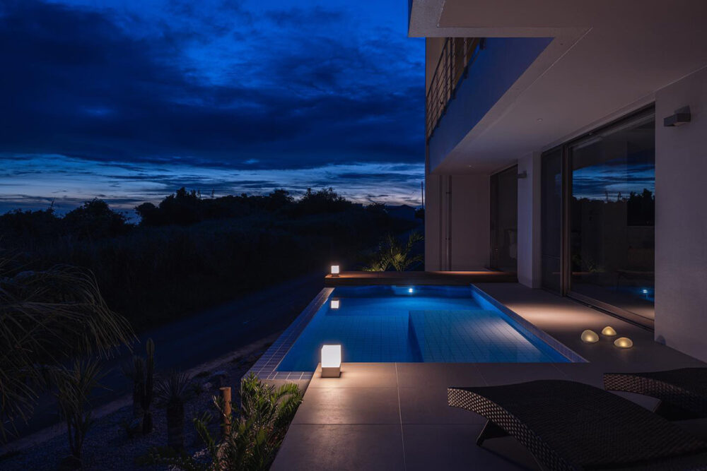 沖縄本島北部・古宇利島を望む高台に建つ、1日2組限定のプライベートヴィラ。